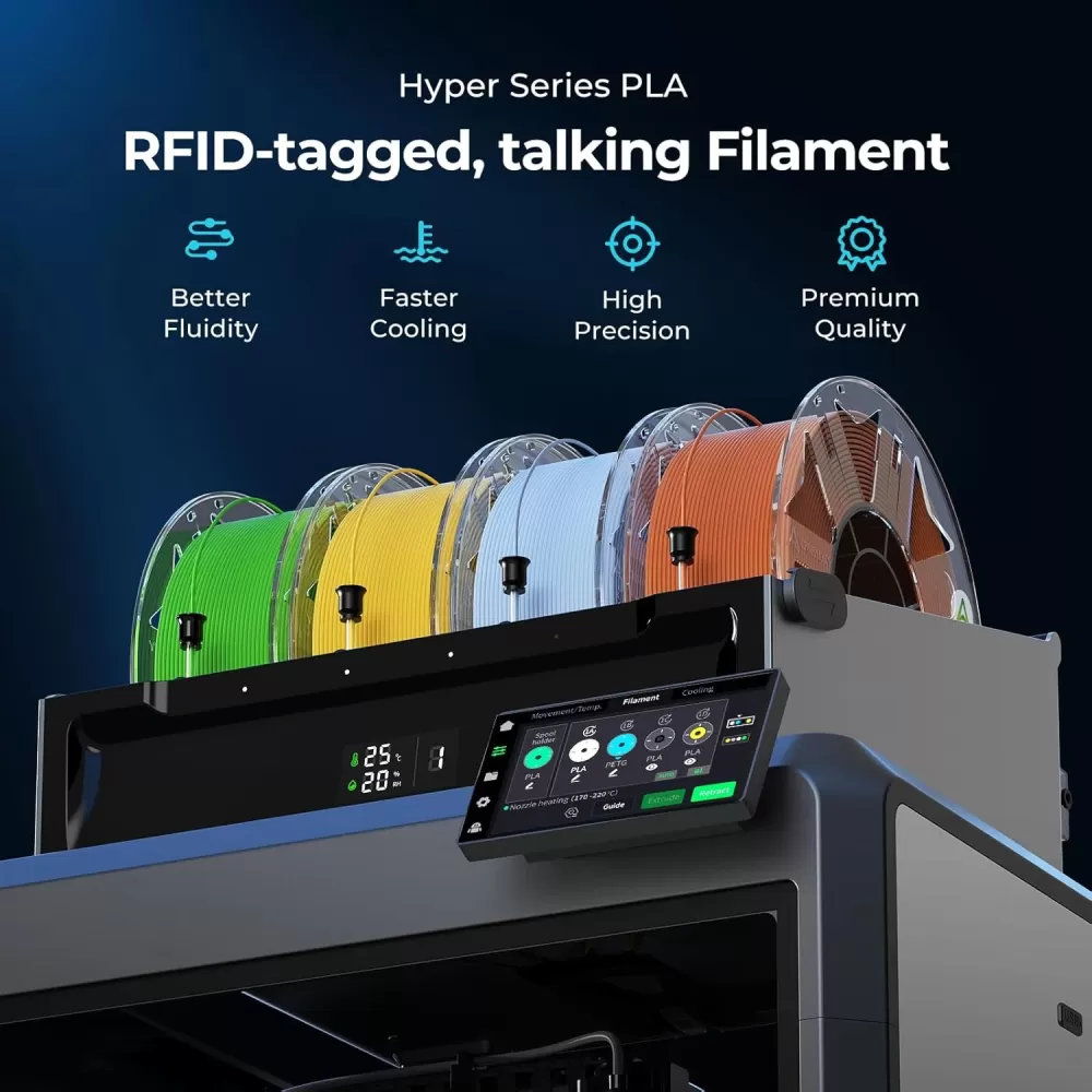 Dėl geresnio liejimo, bei spartesnio aušimo - Hyper PLA serijos 3D spausdinimo filamentu iš Creality galima spausdinti iki 600mm/s sparta (priklausomai nuo 3D spausdintuvo savybių bei aplinkos sąlygų).