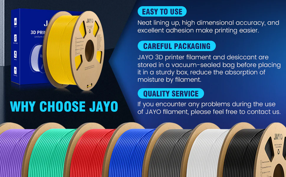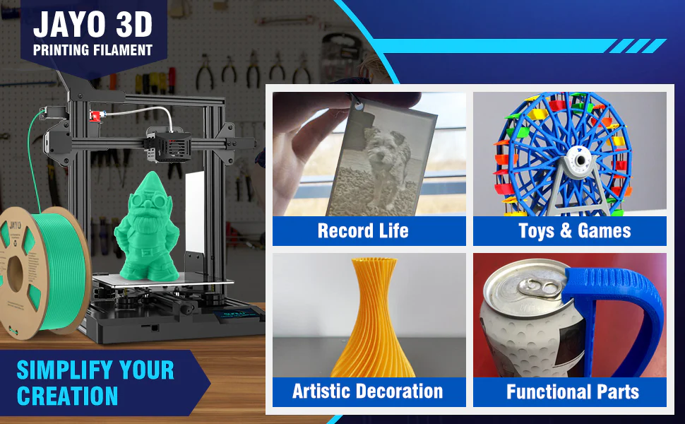 Plačiai suderinamas su 99 % rinkoje esančių FDM 3D spausdintuvų ir 3D rašiklių, todėl idealiai tinka pradedantiesiems. JAYO PLA plastiko stabilumas užtikrina sklandesnę spausdinimo patirtį.