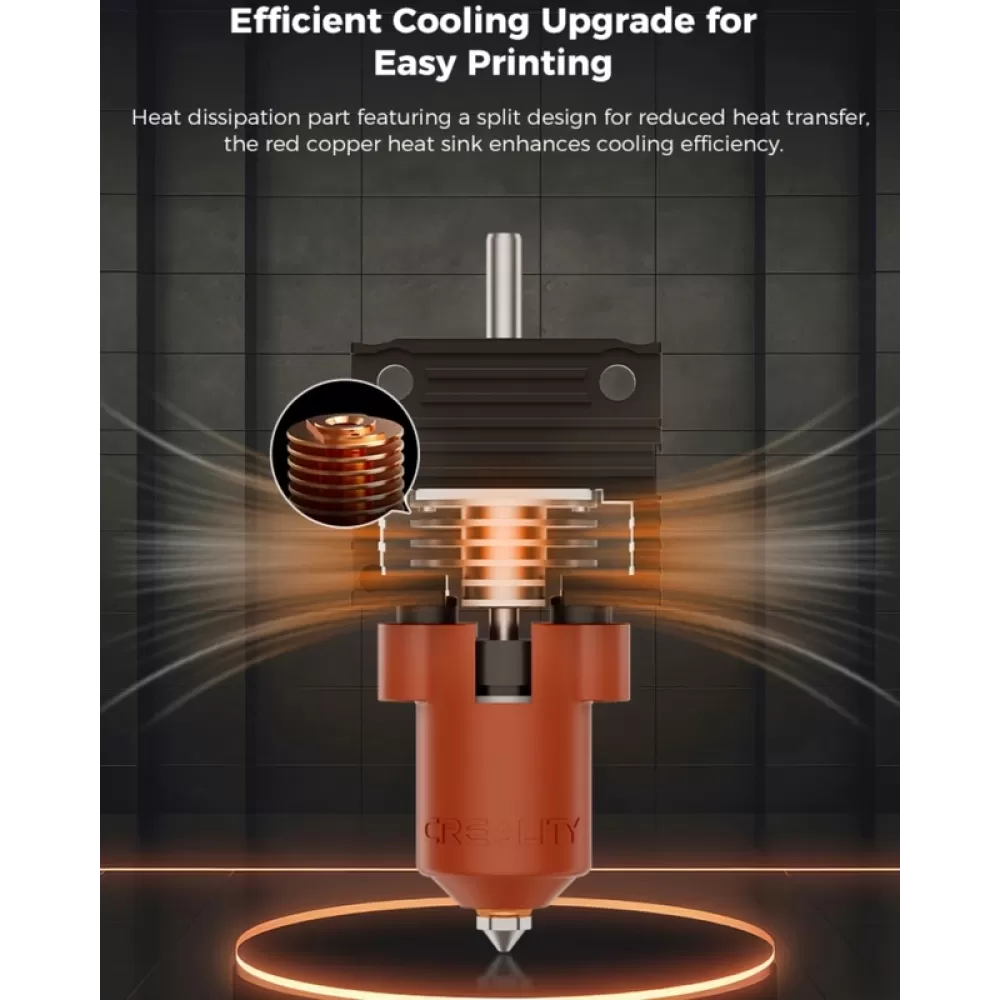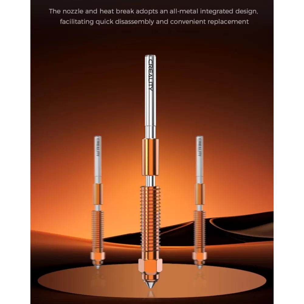 Kaitintuvo (hotend) komplektas skirtas Creality 3D spausdintuvams K1 bei K1MAX su senesniais kaitintuvais, kuriuose naudojami purkštukai be termobarjero