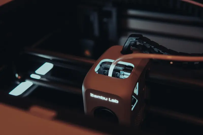 A high-tech 3D printer in action with a sleek design